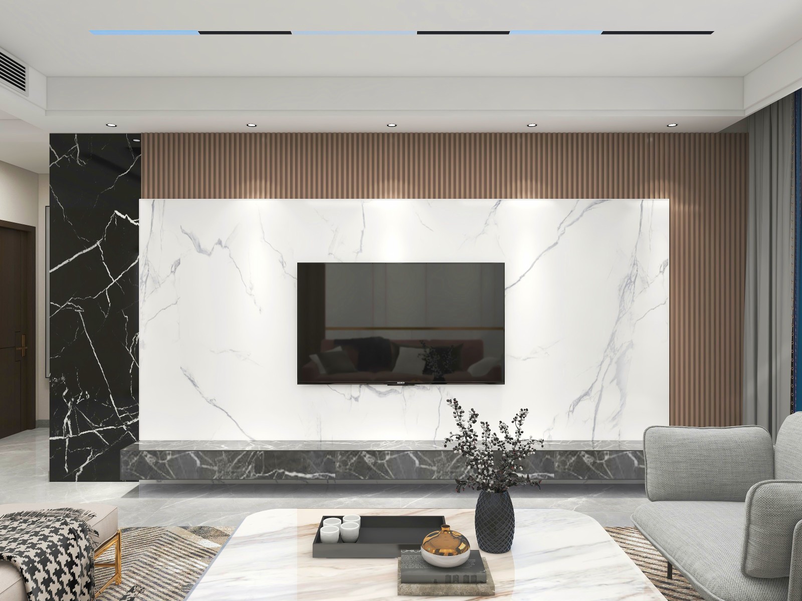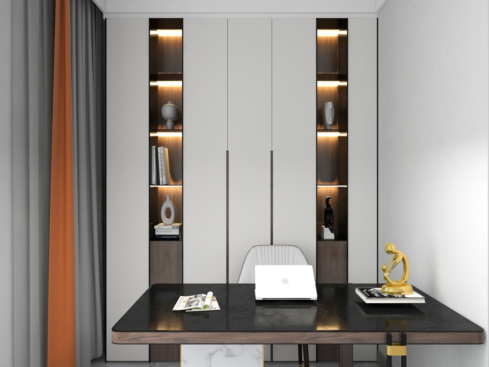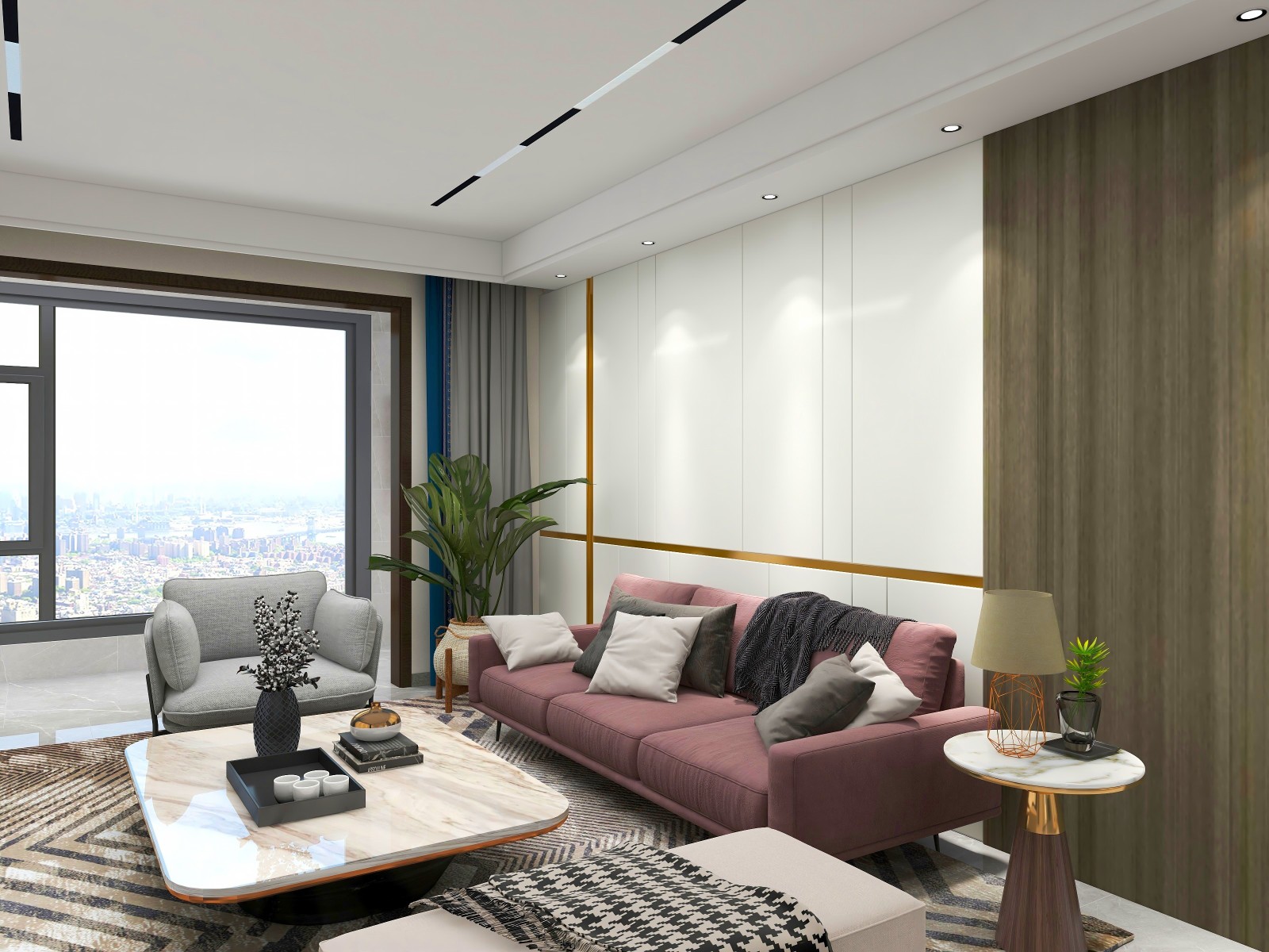 设计理念:本案定义为现代轻奢风,现代轻奢是将材料、色彩、灯光及元素进行简化,以实用的功能性家具为主,用简洁的视觉效果营造出时本案定义为现代轻奢风,现代轻奢是将材料、色彩、灯光及元素进行简化,以实用的功能性家具为主,用简洁的视觉效果营造出时尚前卫的家居氛围,用优雅低调最受青睐的高级灰把持全局,使得整体空间显得高雅、深邃、宁静、性感。中性而又低奢的黄铜拉丝材质一直伴随着主旋律而存在,大面积的高级灰会稍显缺乏生活气息,所以在不同的空间中设计师加入了不同的亮色来点缀,在拉开空间层次感的同时赋予了每个空间不同的灵魂。