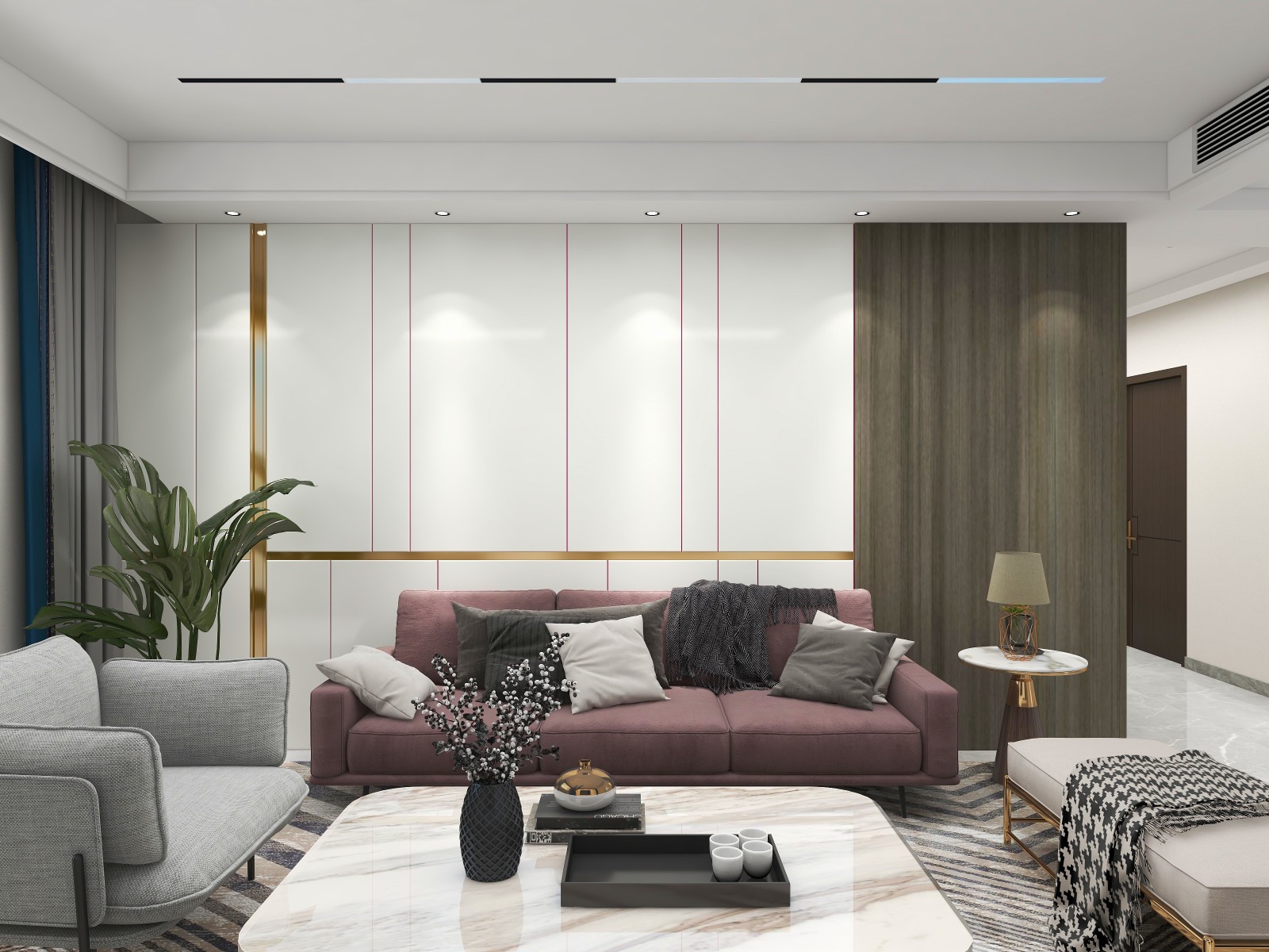 设计理念:本案定义为现代轻奢风,现代轻奢是将材料、色彩、灯光及元素进行简化,以实用的功能性家具为主,用简洁的视觉效果营造出时本案定义为现代轻奢风,现代轻奢是将材料、色彩、灯光及元素进行简化,以实用的功能性家具为主,用简洁的视觉效果营造出时尚前卫的家居氛围,用优雅低调最受青睐的高级灰把持全局,使得整体空间显得高雅、深邃、宁静、性感。中性而又低奢的黄铜拉丝材质一直伴随着主旋律而存在,大面积的高级灰会稍显缺乏生活气息,所以在不同的空间中设计师加入了不同的亮色来点缀,在拉开空间层次感的同时赋予了每个空间不同的灵魂。